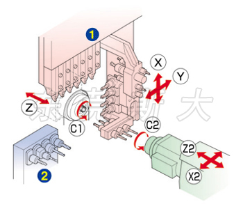 | 四、斯大走心機SR-32JtypeN橫向鉆孔5軸單元下方2軸,采用模塊化設計,可根據工件需要自由安裝可交換式工具,實現工藝的靈活性 | |||
